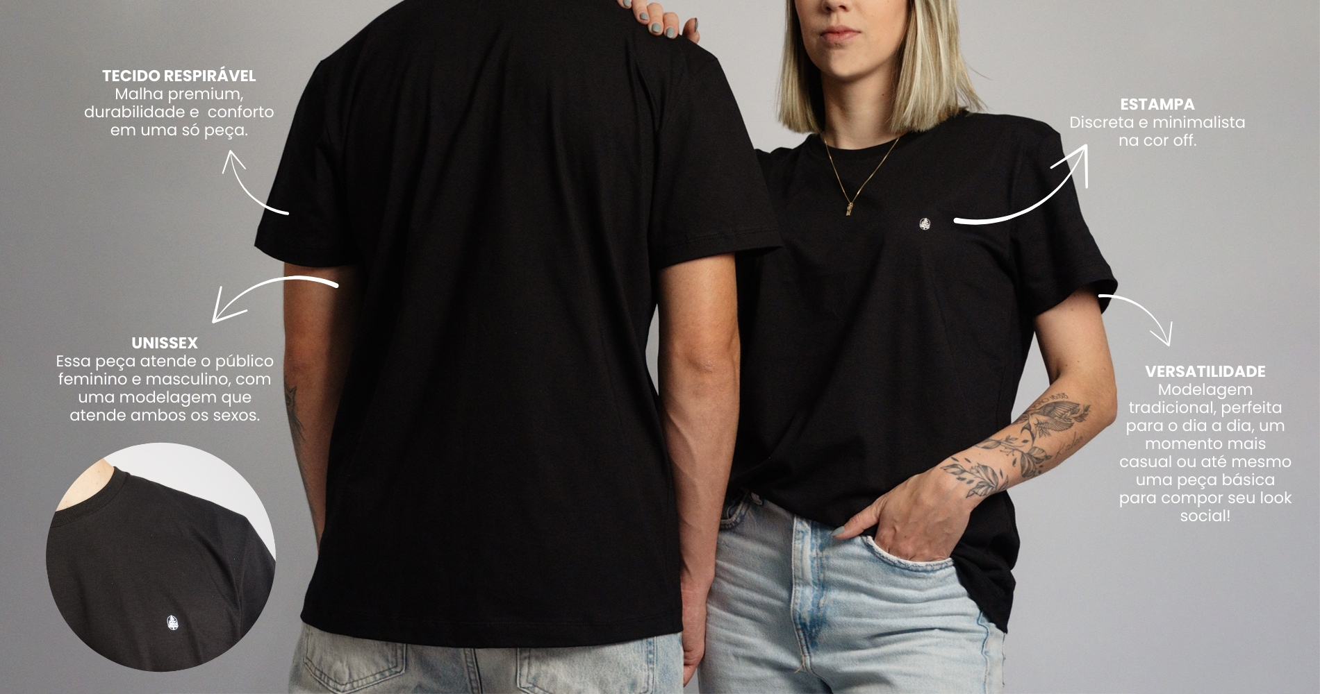 A Camiseta Essential Preta Oren é feita para acompanhar você em qualquer ocasião. Minimalista e atemporal, combina conforto com estilo clean, perfeita para o seu dia a dia.
