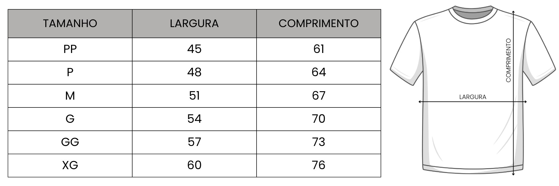 TABELA DE MEDIDAS: